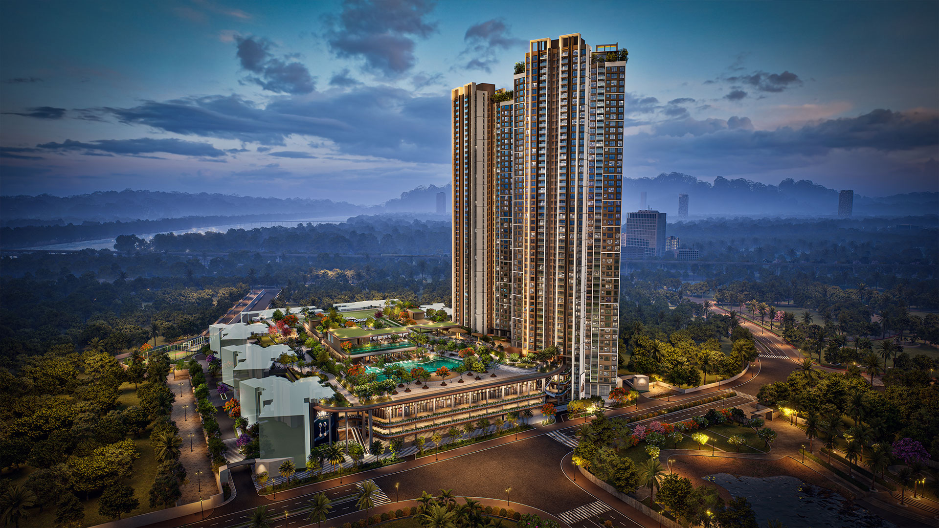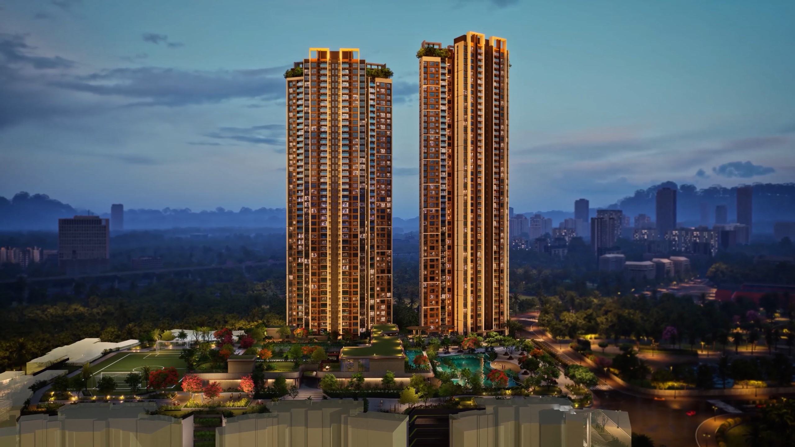 The newest phase is a 12.8-acre masterpiece on Kolshet Road featuring a 6.10-acre podium, Rooftop Lounge & Gym. 1.5-acre lavish clubhouse, and stunning views of NGCP, creek hills, & city skyline with Grand Park in the Township. Two iconic towers offer fully air-conditioned, smart, and vastu-compliant homes designed for modern living. Residents enjoy a self-sustainable lifestyle with over 405 features and amenities catering to every family’s needs. Early buyers—first 100 units—receive exclusive tech upgrades including smart switches, sensor lighting, smart door locks with video door phones, and air conditioners in the living room and bedrooms. With varied apartment options, ongoing phases, a vibrant social infrastructure, and great connectivity including upcoming Metro lines, Kalpataru Parkcity truly stands as the New Centre of Thane.