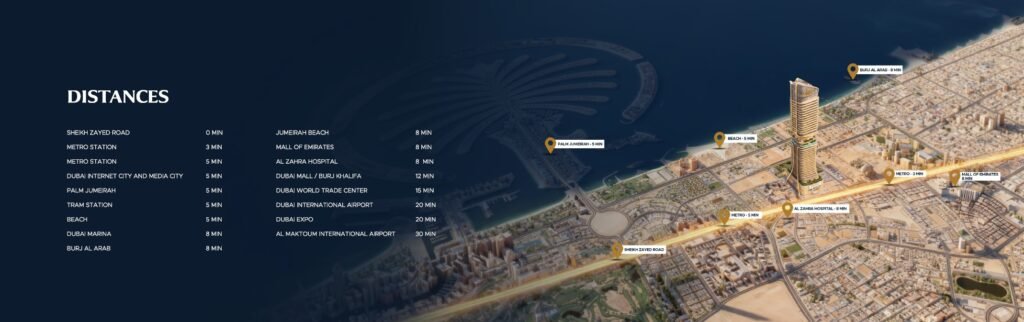 Shahrukhz by Danube stands in the heart of Dubai, surrounded by the city’s most influential commercial, leisure, and residential districts. With effortless connectivity to Dubai Marina, Palm Jumeirah, JLT, Mall of the Emirates, and major business zones like DIFC and Downtown Dubai, the development ensures an address that is not just desirable but strategically impactful. Easy access to major highways, metro networks, airports, and hospitality hubs further strengthens its value as a commercial investment.